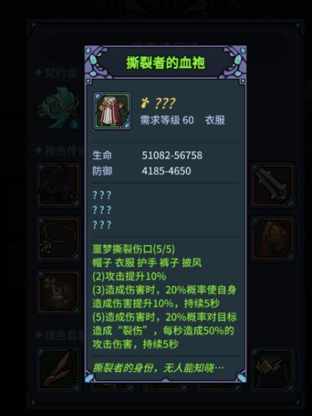 PS:进击套是必备套装,撕裂套可随缘出,毕竟噩3boss也要打一阵,总会爆的。