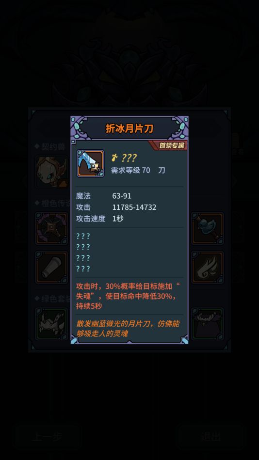 噩5的话,就需要打boss武器了,这里有两把,一把刮痧刀一把天鹅杖,我推荐打出刮痧刀,这玩意也是妥妥的开荒神器,建议打个带字的出来,到大师也照样开图~其他的没太大要求,两件带字星月套装和真灵套凑个3+2即可~