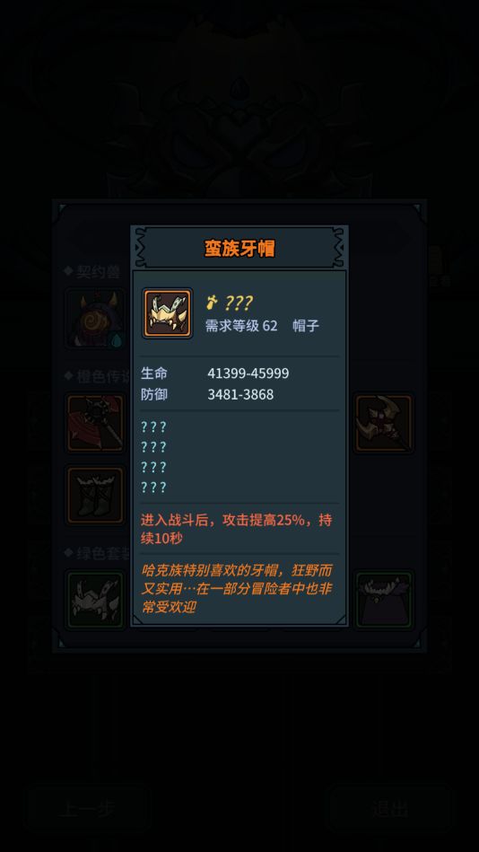 除了神木布袍以外,我们还需要什么呢?之前也说了,由于这个boss有反伤机制,加上还有眩晕技能,进击套在这不是很好使,可以考虑先用撕裂3件+神木+任意散装的搭配过图,可以考虑搭配这个帽子,因为蛮族牙帽的词缀效果打小怪还是蛮爽的,打boss前10秒也还凑合,反正是搭配散装。