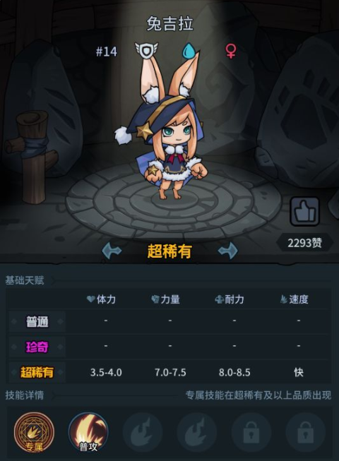 从专属技能来看,兔吉拉的技能强度是随着主人生命值的上限增加而增强。在刷一些较低级怪时,基本可以保证无伤刷图,用于练级和刷金币也是一个不错的选择。其次,附带的露露索尔斯提供高强度减伤,保证兔吉拉的盾持续供应。