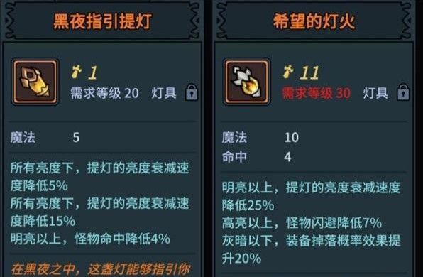 角色右侧倒数第二件装备为提灯,提供属性极低,主要看特效。特效与当前亮度有关。