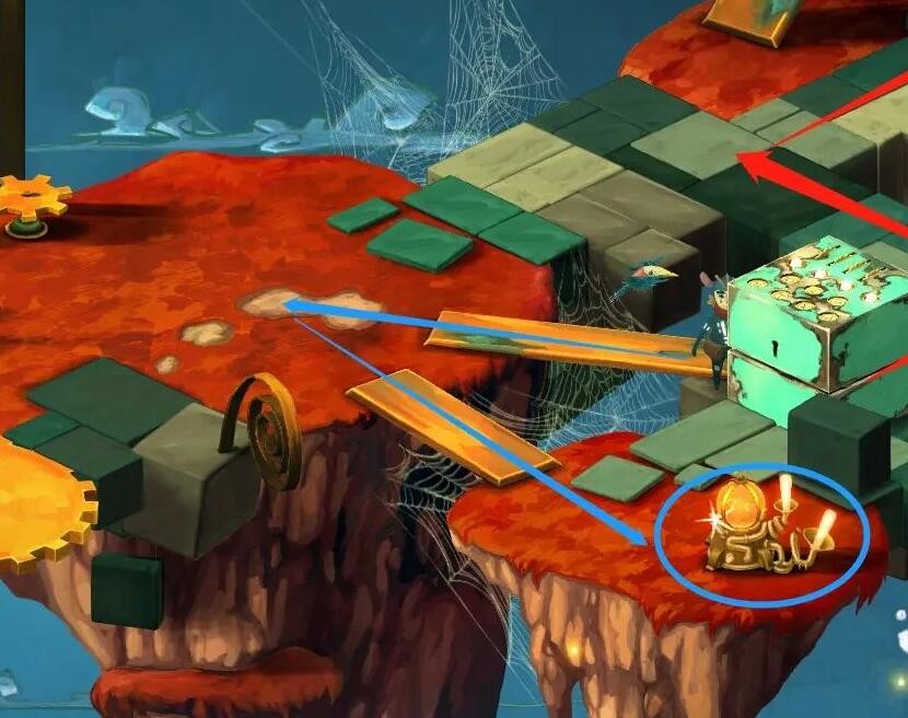 灵魂碎片:在前面,重新拿回牙齿路的绿色电池,加上刚刚拿的绿色电池,现在就有两个绿色电池,先蓝色风塔向右上吹