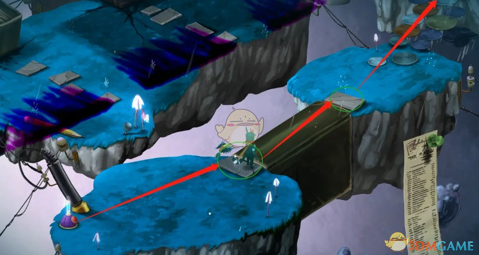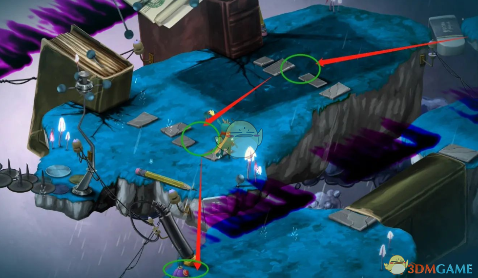 绿色箭头为带壳生物的路线(橡皮的位置是可以站的) 拿到圆盘 打蜘蛛拿电池,放电池 打触手,打完往左