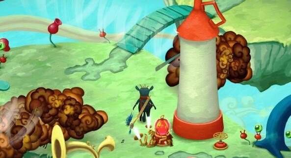 转动蓝色风塔的把手,吹开前面瘟疫,注意躲避天上掉下来的牙齿
