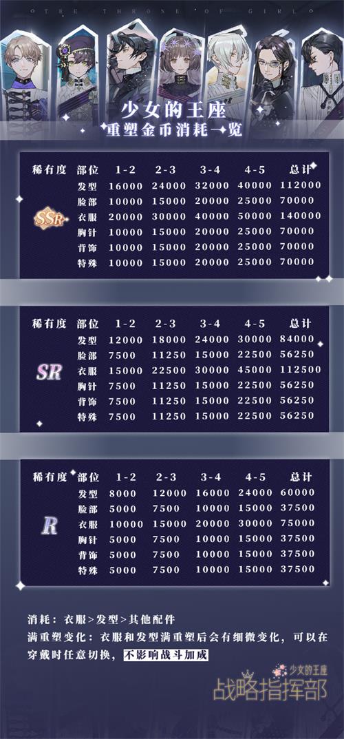 以上就是《少女的王座》重塑金币消耗表一览,更多游戏攻略请持续关注手游网!