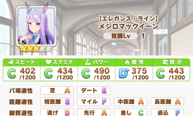 ura预选继续补力速和黄色技能,注意属性之间的平衡,体力智力都至少要D+,力速到了B可以考虑补下弱(大概也可以硬莽继续加,不过我没试过,暂时就拿自己的例子说)