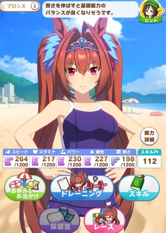 毅力:影响最后冲刺阶段持久力不足时保持速度的时间长短,根据绿色恶魔的战后提示,这个点数也跟赛马娘的“斗争心”有关,有利于比赛最后冲刺阶段赛马娘超车