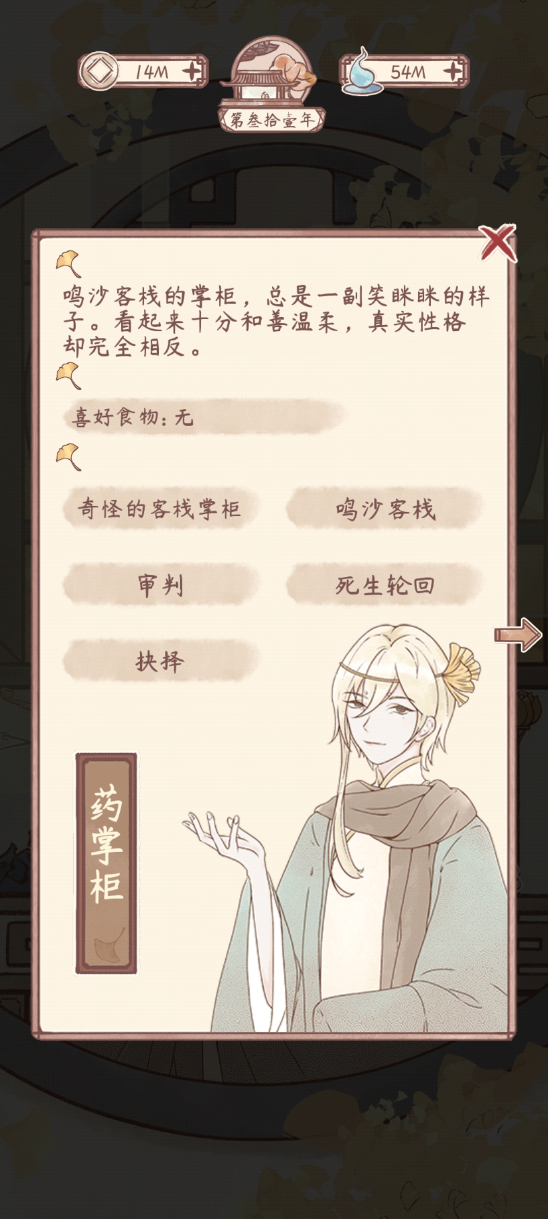 以上就是小编整理带来的鸣沙客栈药掌柜剧情攻略,药掌柜剧情解锁条件,更多精彩内容,请点击关注手游网更新!