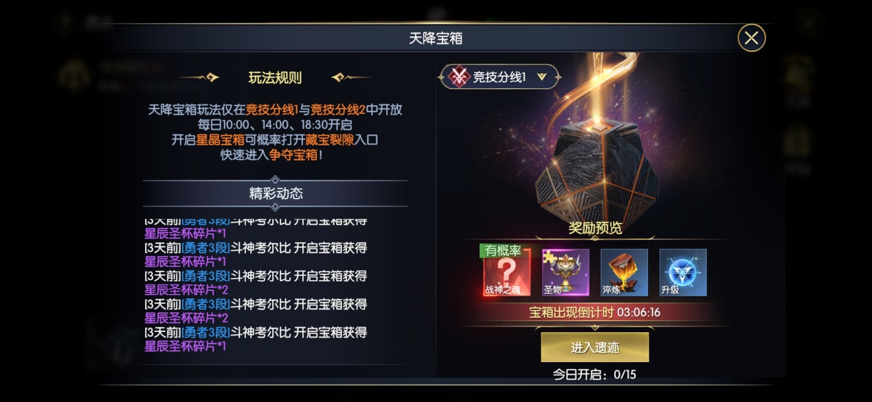 天降宝箱是非常重度的PVP玩法。和劫镖不同,在天降宝箱模式中,玩家的数量会更多,宝箱之间的争夺也会更加激烈。最好是全程不要开自动战斗,如果练度够的话,以打人为优先,星晶宝箱可以之后处理。