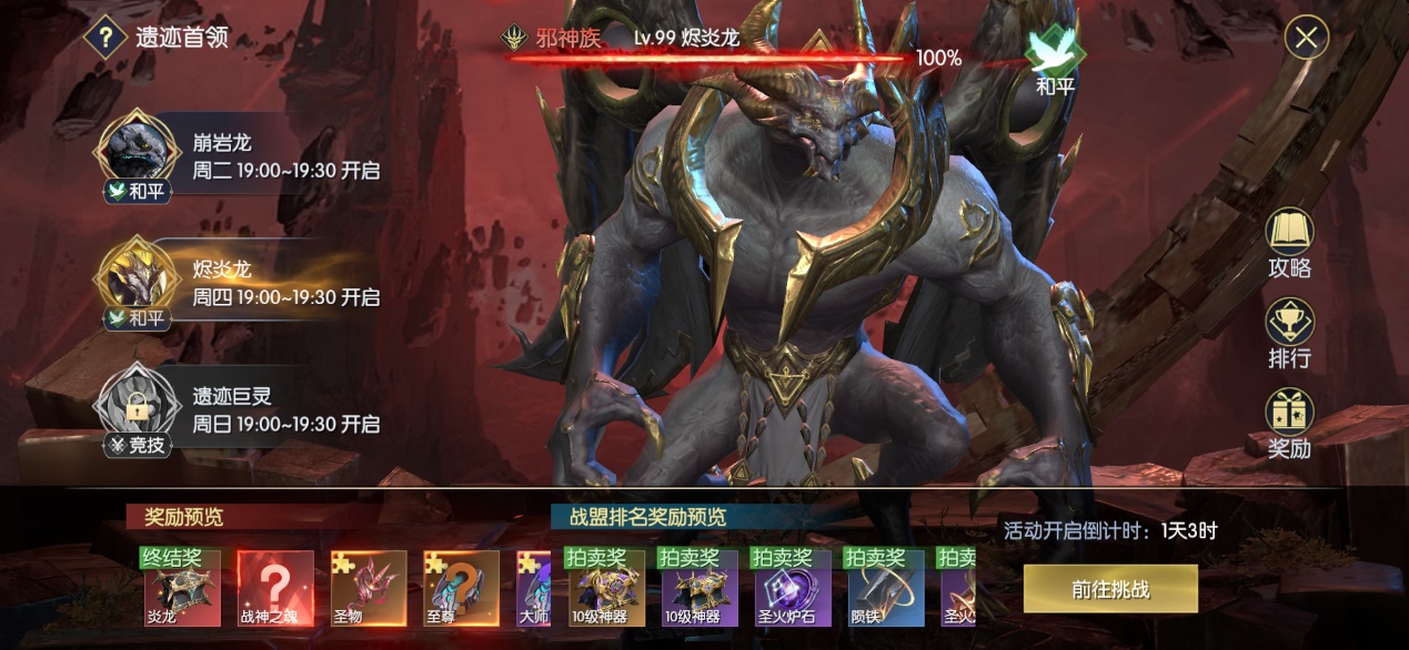 遗迹首领是相当于世界BOSS一样的存在,所有进入「遗迹战场」的玩家都可以对其进行讨伐。在击败BOSS之后,根据造成的伤害排名,玩家可以获得不同的奖励。
