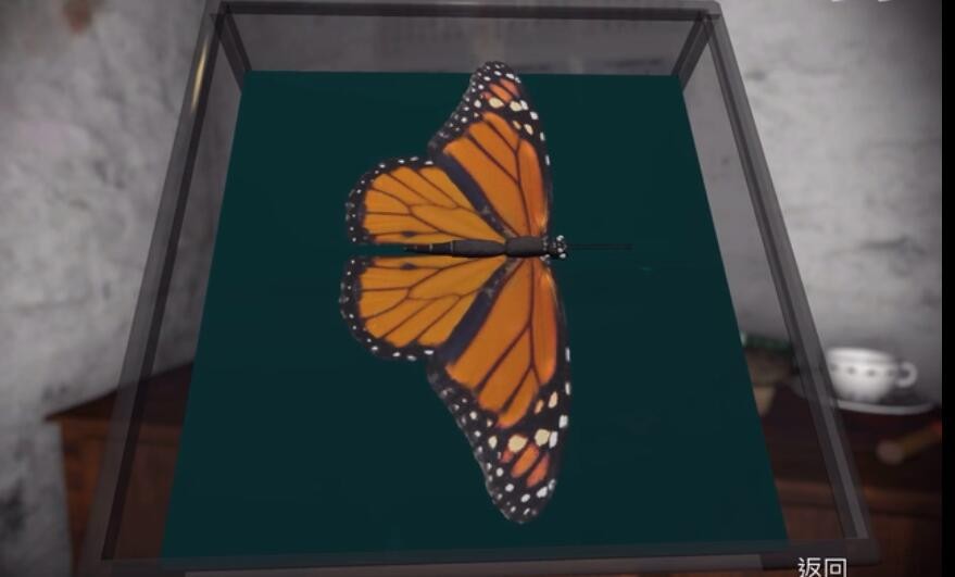 找到【标本】之后,点击将桌上蝴蝶标本的翅膀撕下来,然后查看可获得线索。