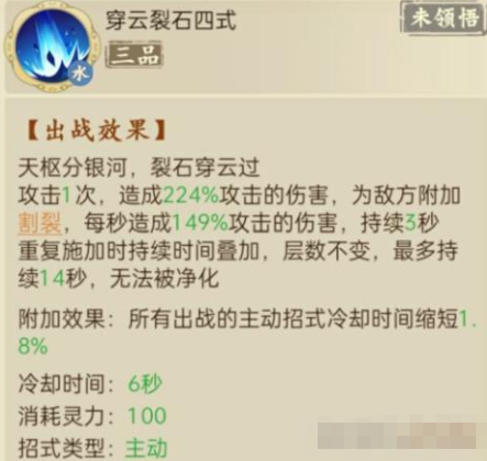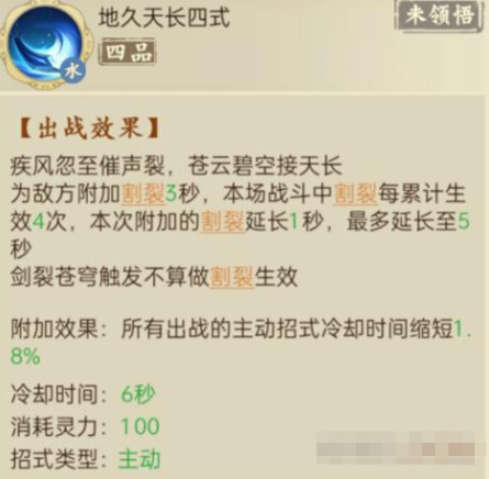 前期开局可以用穿云、风裂、幻雨小组合,中期盘龙城千仞堂商店可以换取1-2品断崖经,大乘前期可以在玄天剑派弄2品天长真经,2品地久天长只有2秒,提前用的话,2品地久天长直接接上穿云裂石再释放风裂云痕。