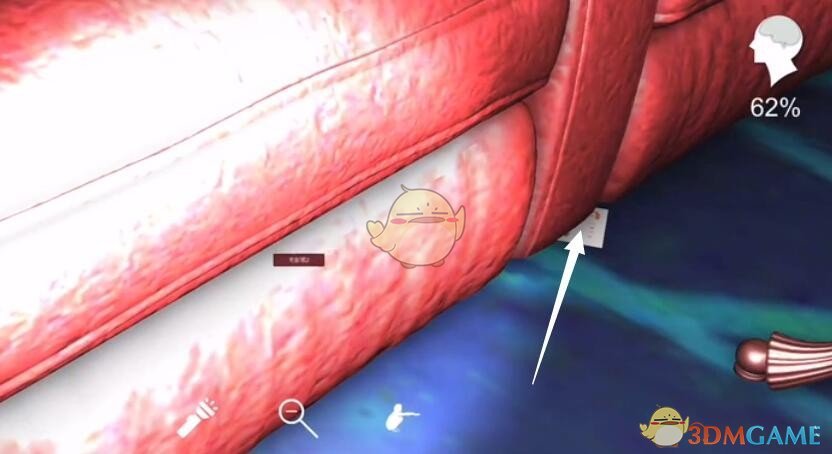 位置:收集到一定程度五级线索之后“坐下”(在受害人位置),之后来到右边的座位(有矿泉水瓶)的底下,点击将它获取。如果无法点击可以尝试蹲下靠近。