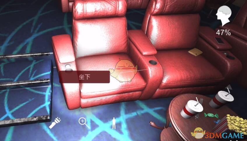 收集到一定程度五级线索之后在“坐下”(在受害人位置),之后电影会自动开始播放,之后自动获得该线索。