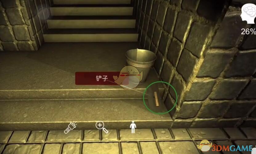 位置:如图所示,在【棋盘桌】旁边通道这里有一把铲子,点击获取线索。