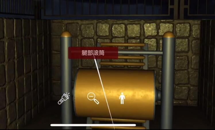 位置:如图所示健身器材就是腿部滚筒,点击获得线索。