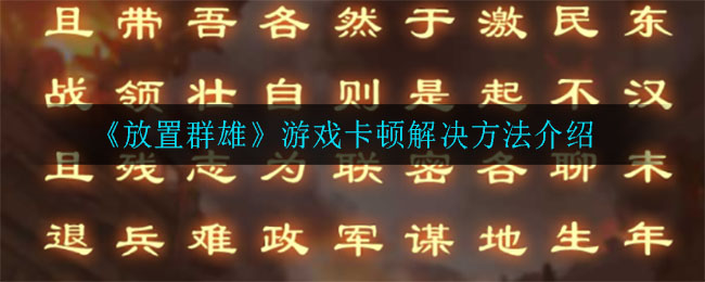 放置群雄游戏卡顿怎么办?最近很多小伙伴都遇到了游戏过程中异常卡顿的问题,很多小伙伴都很想知道游戏卡顿应该怎么解决,今天小编给大家带来了《放置群雄》游戏卡顿解决方法介绍,感兴趣的小伙伴一起来看看吧。