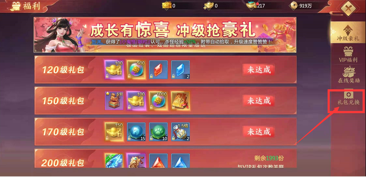 2:点击右边:礼包兑换