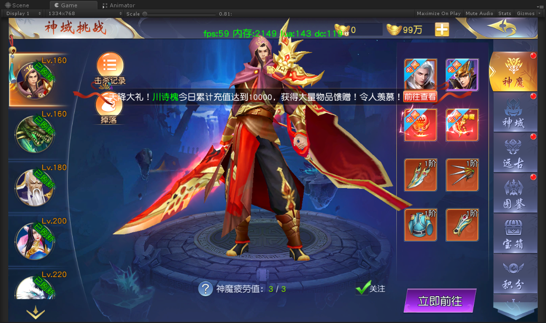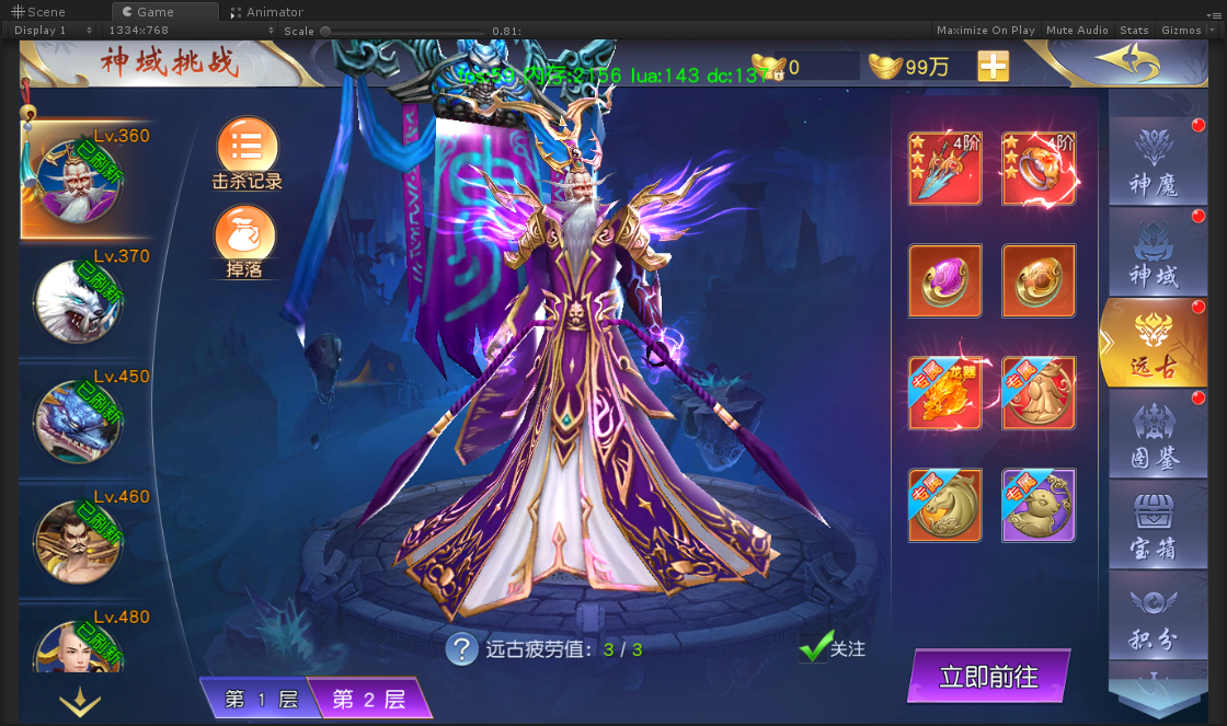 玩家每天会获得3点神域BOSS疲劳值,消耗疲劳值可获得BOSS的掉落,疲劳值满了以后无法对BOSS造成伤害,神域BOSS掉落专属的生肖装备、圣器激活卡、圣器附灵材料。
