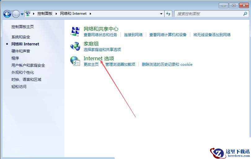 2、接着,在打开的界面中,继续点击进入“Internet选项”设置。