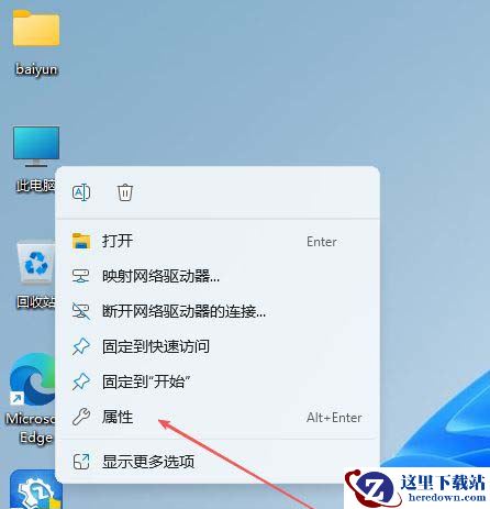 1、首先,右键点击选择桌面的“此电脑”图标,选择打开“属性”界面。