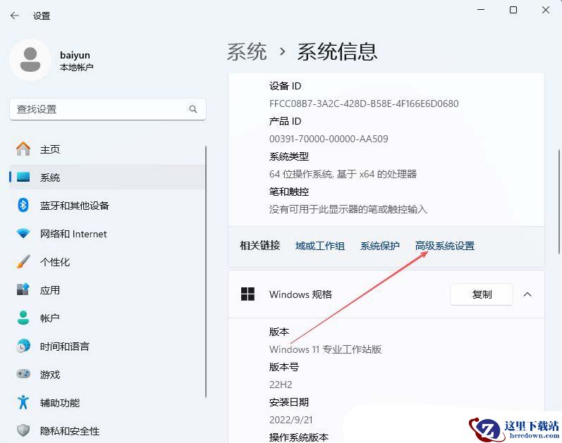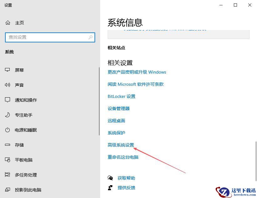 2、接着,在打开的界面中,选择打开“高级系统设置”。