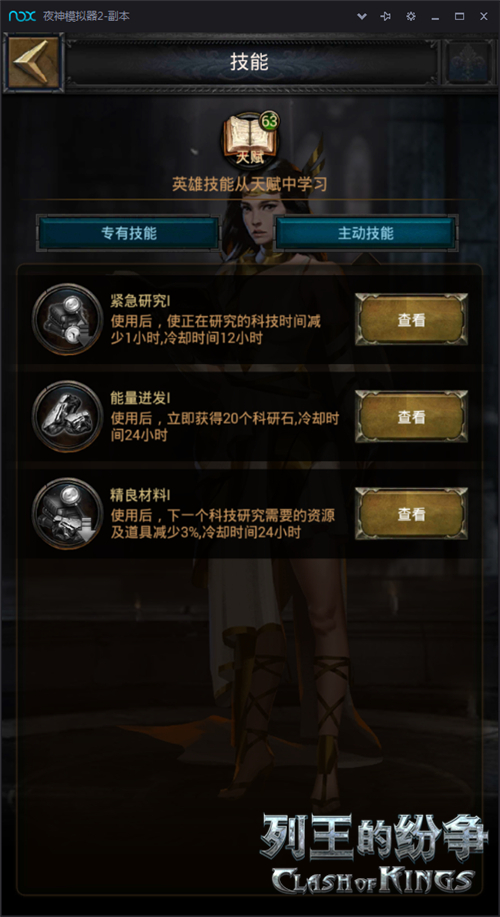 英雄特性:提高科技研究速度,降低科技研究消耗。学习专属技能可获得科研石,缩短研究中心的科技所需时间。