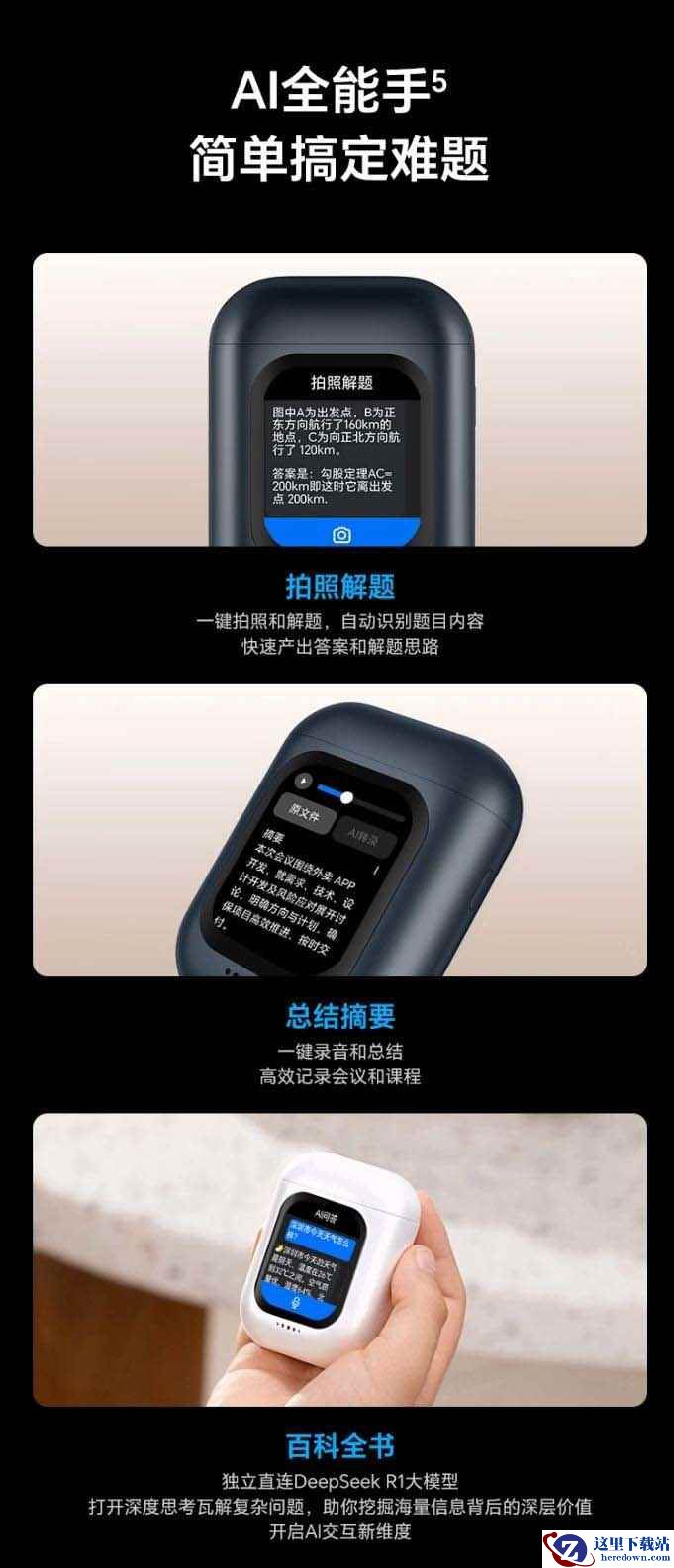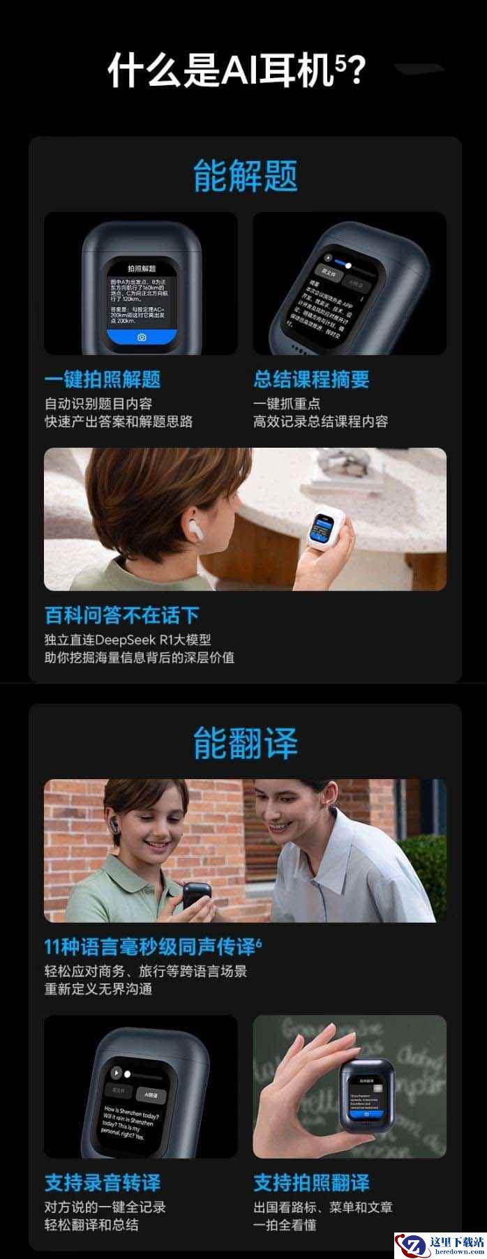 此外,这款耳机配备各种 AI 功能,支持拍照解题、总结摘要、百科全书等,还可独立直连 DeepSeek R1 大模型,帮助用户开启 AI 交互新维度,支持同声传译 11 种语言,还可拍照翻译,应对商务、跨国旅行等场景,拥有 12.4mm 大动圈单元,号称“低音浑厚有力”。