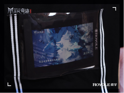这款T-shirt由HATER品牌为玩家量身打造,除外型酷炫外兼具柔软与舒适。同时,这款T-shirt创新性地安装了一片来自柔宇科技的全柔性显示屏。这片全柔性屏薄如蝉翼,能够将游戏CG播放在T-shirt上,用户还可以任意控制屏幕播放不同的游戏画面,让看似平凡的衣服也能实现智能交互,呈现出极致的视觉效果。玩家们将这样的“未来布料”穿在身上,随时成为街上最亮眼的仔。