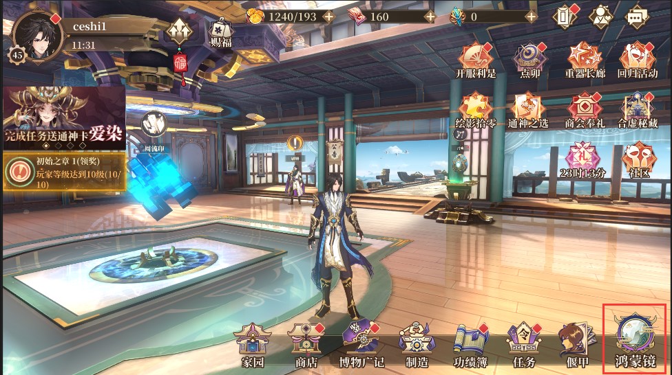1.进入游戏后,点击主界面右下角-鸿蒙境按钮进入鸿蒙境界面;