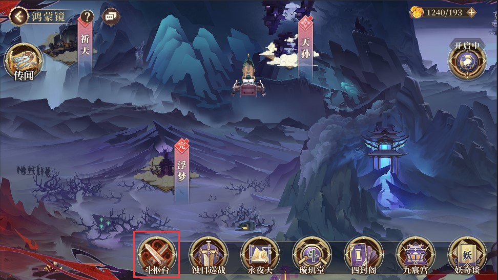 2.在鸿蒙境下方功能按钮处点击斗枢台,即可进入斗枢台玩法界面;