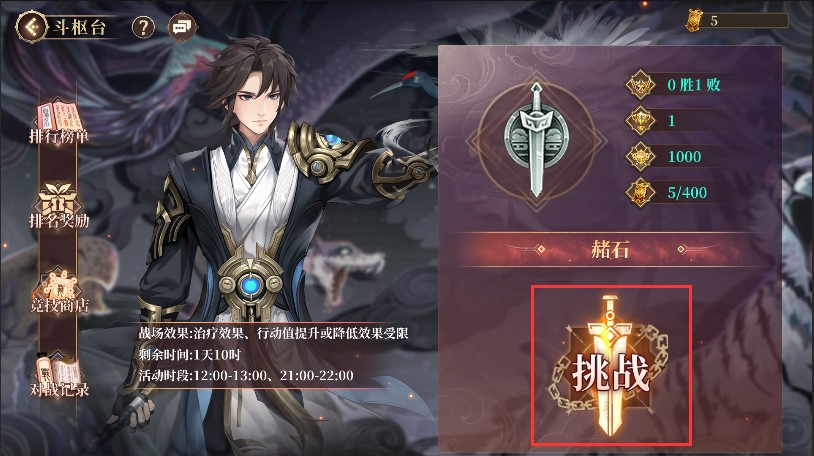 玩法简介:斗枢台为实时PVP玩法,玩家可以在系统规定的开放时间段内,匹配段位相近的其他玩家进行实时对战,其中玩家间互相匹配的范围为跨服匹配。