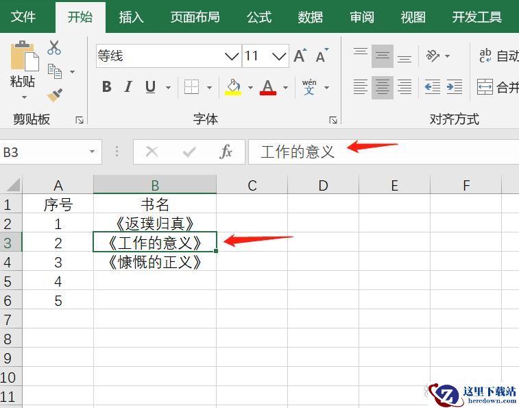 输入书名按Enter键,单元格会自动给书名添加书名号。这里我们看到实际上单元格里面的内容只有书名,而并没有我们之前手动输入方式的书名号。