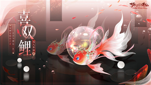 双鲤寄情传尺素,且喜今朝定三生!恰逢佳节,正是时候乘骑全新浪漫双人坐骑·喜双鲤,与情缘共度佳期。更有独特的双人专属互动动作「亲密无间」,把浪漫氛围提升到极点!