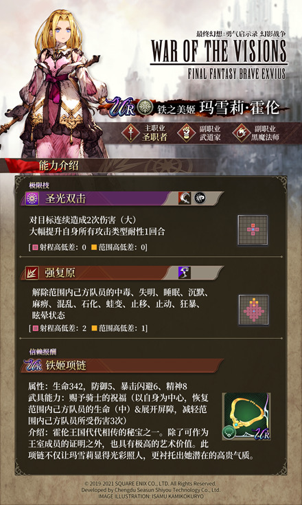 以上就是《FFBE 幻影战争》UR兵员【玛雪莉】以及【伊尔迪拉】的概况了,喜欢的小伙伴一定不要错过当期卡池哦,我们下期再见。