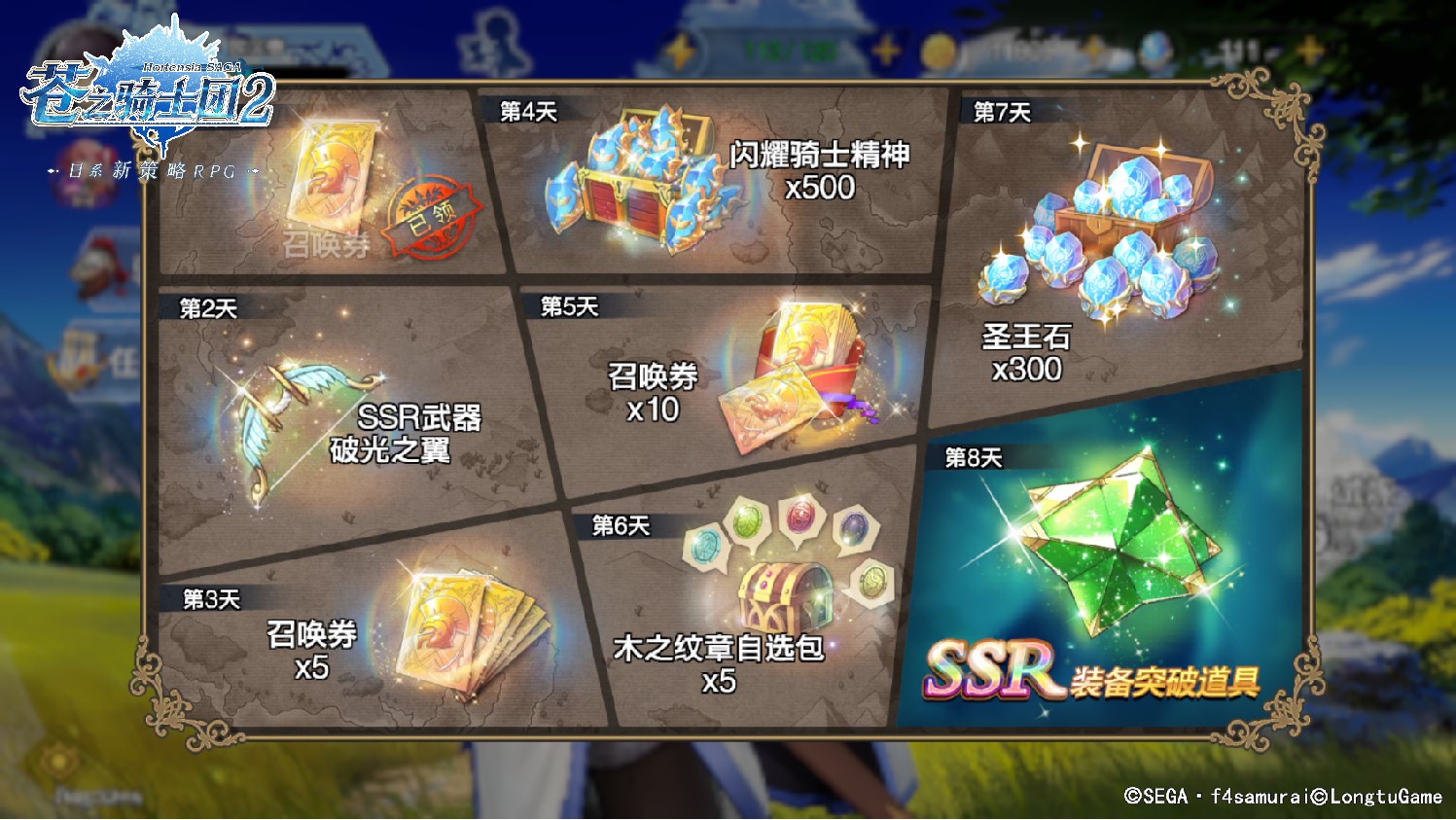 初来奥尔坦西亚王国,强力的伙伴支持与庞大的道具储备是逆袭之旅的必备条件。《苍之骑士团2》开局即送自选SSR,根治你的培养选择困难症,让开荒赢在起跑线。而随之而来的“七日礼赞”活动,以及初始关卡通关即送召唤卷的暖心福利,不仅天天都有惊喜,同时也实现了玩家们的抽卡自由,快来火速领取福利吧!
