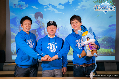 《苍之骑士团2》是中日游戏厂商针对IP合作开发的大胆尝试,此次在日本曝光,对于日本和中国大陆手游市场都有着不小的震动。开发及发行商之一龙图游戏的CEO杨圣辉先生赴日出席活动,并访问了f4samurai总部,与f4samurai COO田口坚士先生及世嘉游戏海外运营总监吕冰先生进行会谈,图为从左到右身着《苍之骑士团2》限量版周边卫衣的f4田口先生、龙图杨圣辉先生、世嘉游戏吕先生的合影。