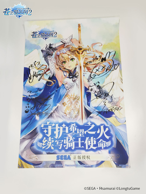值得一提的是,曾参演《苍之骑士团》的四位重量级声优,如大坪由佳(饰特雷西亚)、堀江一真(饰Noel)、乃村健次(饰鲁基斯)、Takahashi智秋(饰玛贝露)本次也出席了粉丝祭,并现场演绎了《苍之骑士团》趣味横生的小剧场。据称,后续《苍之骑士团2》官方将为游戏粉丝送上四位CV签名海报福利,并逐步放出声优祝福VCR。