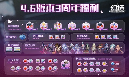 周年期间,累积登录即可领取限定60抽、自选SSR武器箱*1或金核*80、自选SSR意志箱*4或检索凭证*160等惊喜赠礼。新版本执行供给也已同步刷新,登录7天即可累计领取赤核*10、墨晶*1000等丰富奖励。