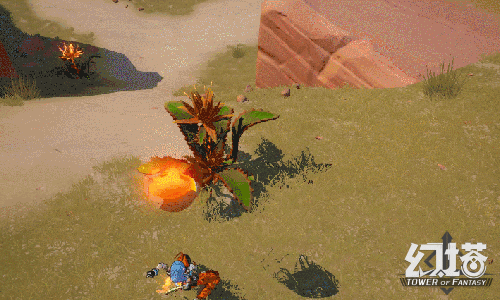 “物理引擎”也是游戏的一大特色。《幻塔》为游戏内的物品、植物、建筑等设计了丰富的交互逻辑,让它们在开阔的地图中自由搭配,产生化学反应。小型敌人可以拿起来投掷,草丛和藤蔓可以被烧掉,交互和解谜结合,形成了参差多态的探索玩法。