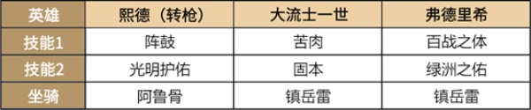 全队英雄唾手可得,只有光明和百战是橙色技能,其他全是白嫖紫技能,整体奶量充足、免伤给力。
