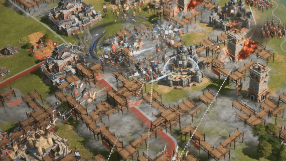 在本次的征服测试中,游戏将地图全面升级,开放区域扩大到7个州(包含4个出生州、2个资源州以及1个中心州“君临”)。在此前的开拓测试中,玩家们围绕资源州“东之新月”上演了无数场精彩的战役,而征服测试的终极目标则是“至高王城”,它坐落于君临的中心,想必各大联盟将围绕君临上演超大名城攻防战。届时,《重返帝国》独有的多城门设计将诞生出更多的策略选择,“调虎离山”、“声东击西”等古代兵法将有机会重现。投石车、箭塔等攻城、守城器械建筑的合理运用也将成为决定王座归属的关键。王者之座虚位以待,到底谁能驾临君临城,问鼎天下,让我们拭目以待。