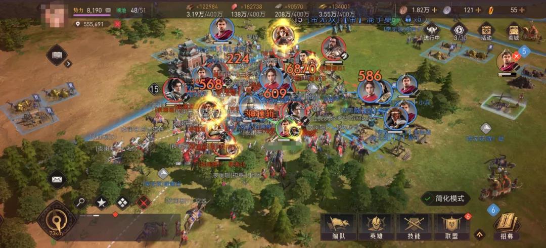 一方面通过兵种克制、养成策略及战场抱团设计等综合方面,保证不同类型玩家的参战体验。比如在混战过程中,你可以灵活点击头像,直接切换克制或血量较少的队伍来打,同时还能自主判断释放主将大招,确保我方部队作战伤害最大化。