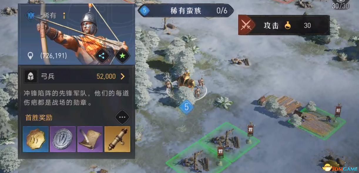 除了打地,还有一点就是地图上刷新的蛮族,进攻他们也需要消耗体力,但击败之后可以获得大量资源等奖励,无论是新手期还是发育期都可以多打打,每个等级的蛮族首次击败时可以获得首胜奖励,包括帝国币和发展方略用的点数,是度过新手期一个关键的资源。