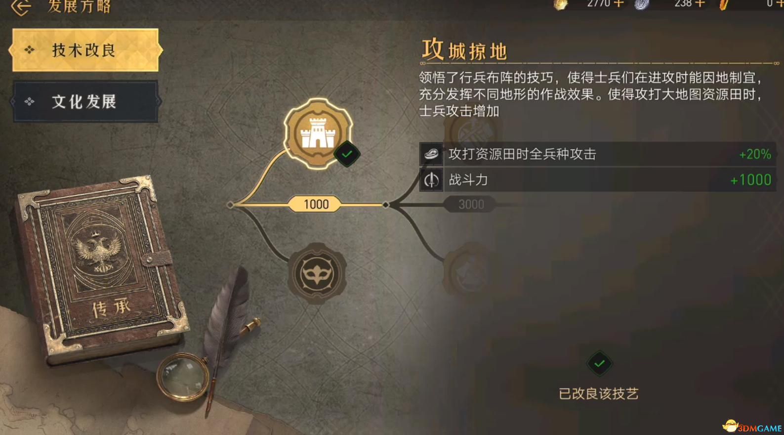发展方略可以在解锁后选择不同的路线,通过发展防御或是进攻,不同的资源收集方向,能够在整个游戏过程中提供比较可观的加成,因此解锁发展方略后及时进行路线的选择是必不可少的。