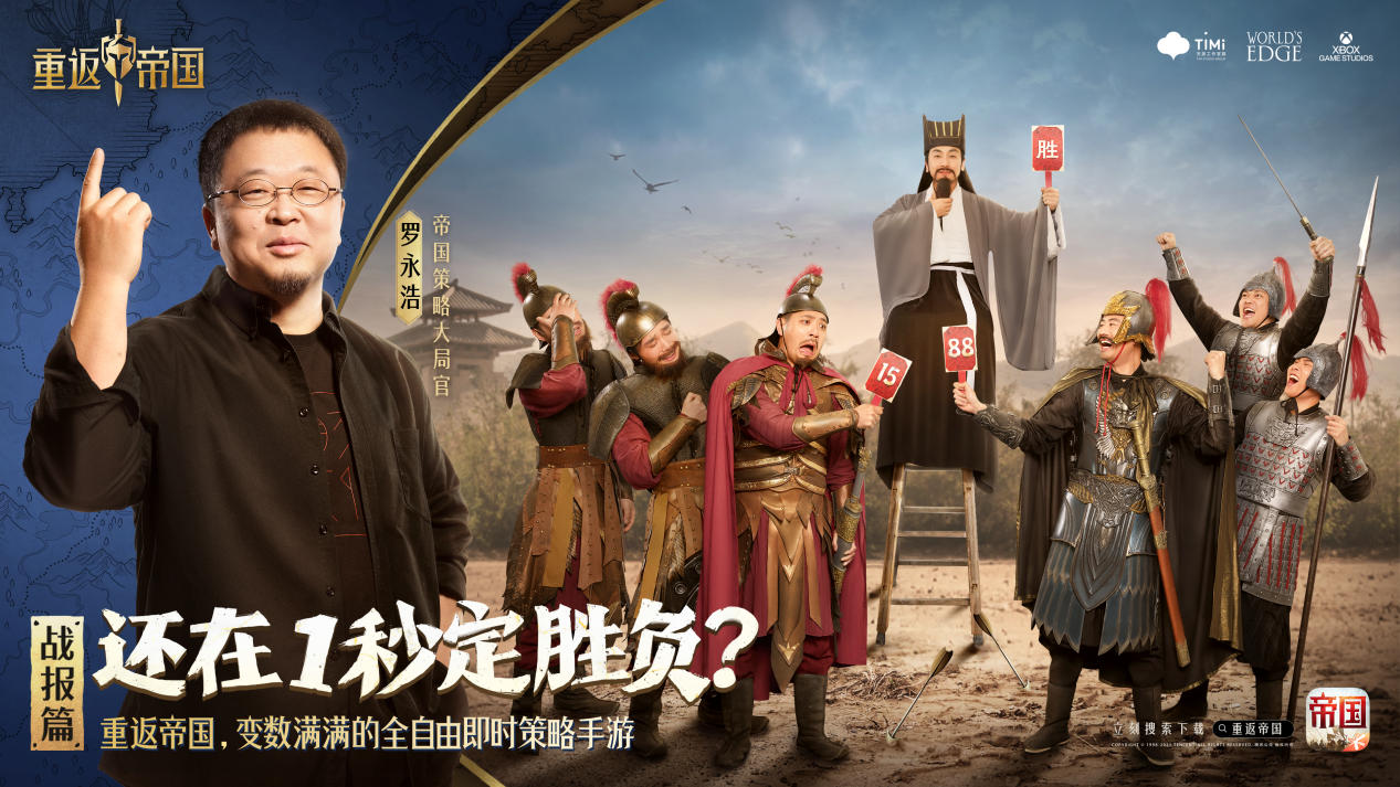 在去年底,《重返帝国》便首度官宣与罗永浩强强联手,他将担任游戏的“策略大局官”,引发了不少粉丝与玩家的期待。如今亲身出演策略大片,将自身多年的智慧借助影片传递给玩家。