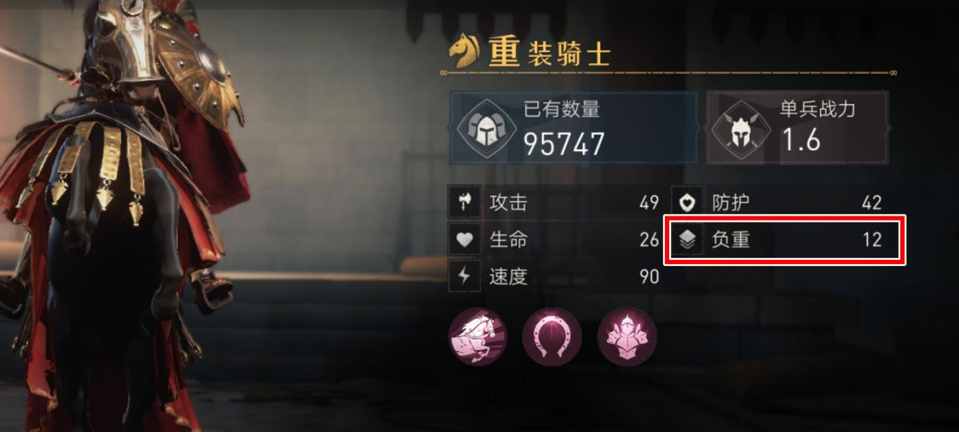 掠夺速度与负重有关,负重越高每秒掠夺的资源也越多;部队负重与士兵相关,如四级士兵负重12,由10万名该士兵组成的部队负重便是120万;1单位负重对应1单位资源,达到上限后无法继续掠夺。