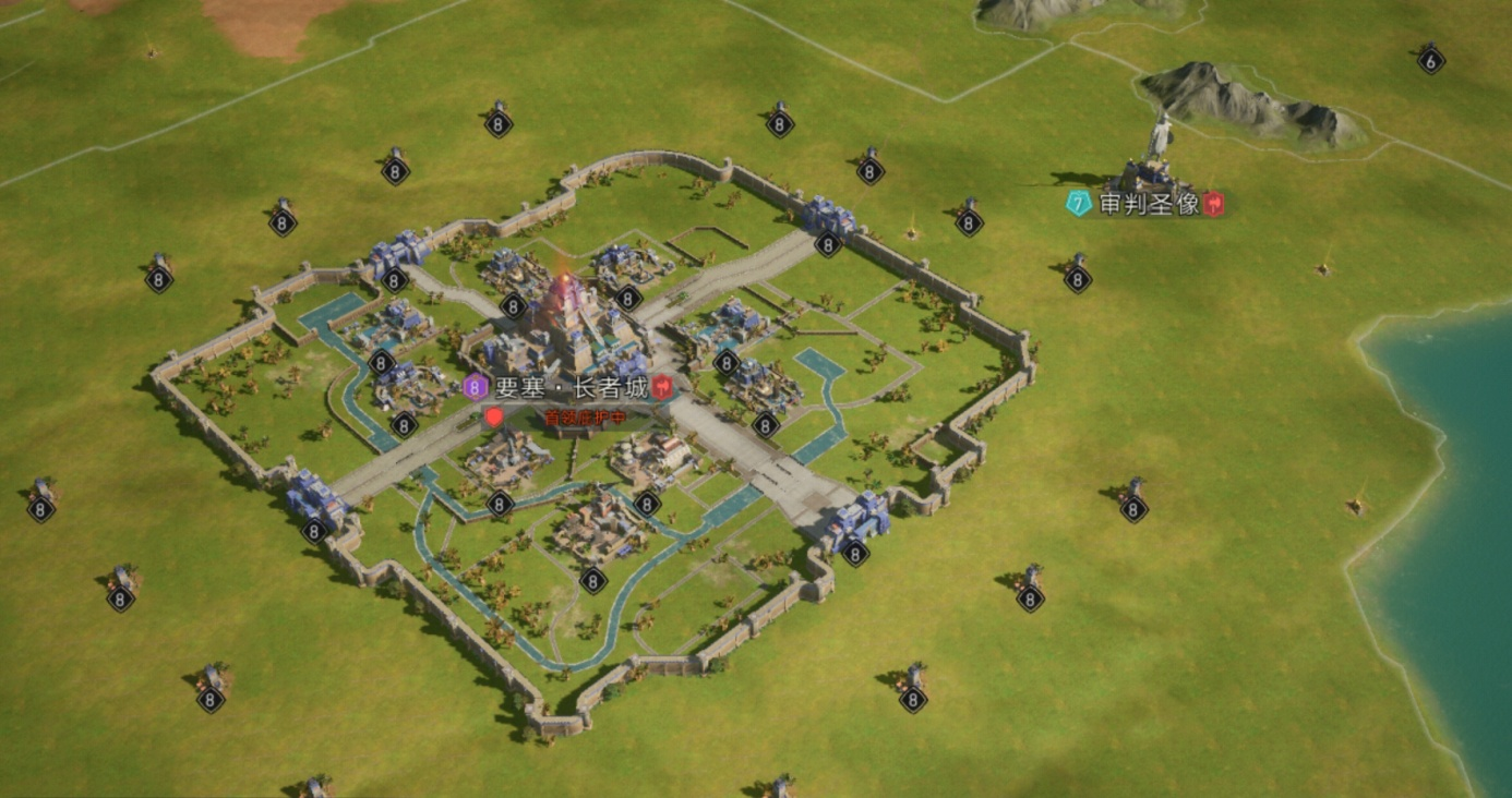8级帝国庇佑圣象,占领效果:至高王城区域内全兵种防御+20%。