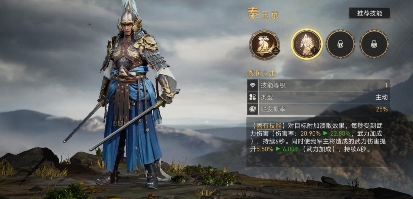 推荐装配签到可得的五星技能泰山压顶、四星技能撕裂,这两个技能可提高溃散效果覆盖率,进一步提升破碎一击的增伤。