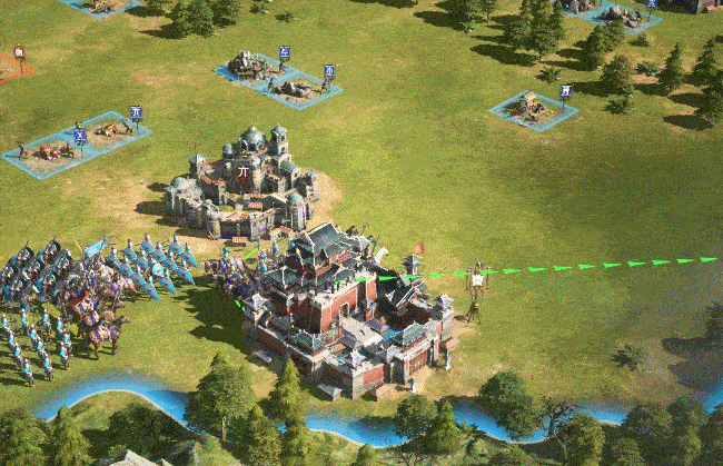 当玩家作为攻城方时,需要根据不同城门的防守强度、兵种类型来制定策略。玩家可以利用《帝国时代》中经典的攻城利器——投石车正面摧毁城墙,或者直接越过城门进攻内城建筑,来达到速战速决的目的。